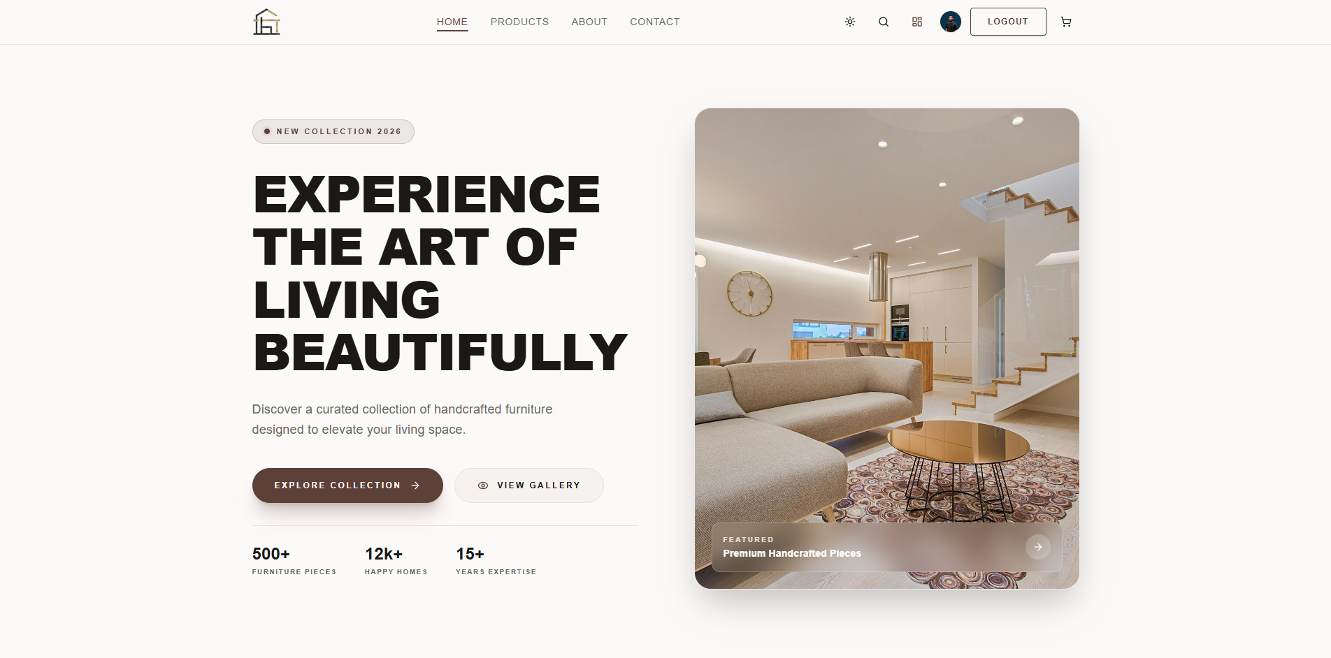 An elegant e-commerce solution for a furniture store, complete with a powerful admin dashboard for comprehensive store management.